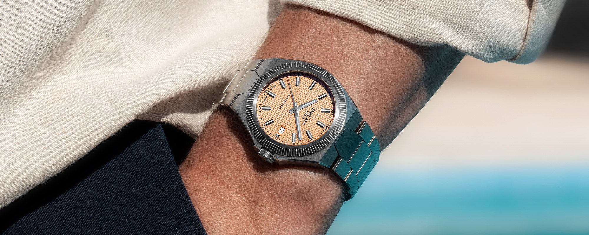 With water resistance to 10 atm, the stainless-steel case is sealed with an exhibition case back revealing the automatic movement and DELMA customized rotor. Complete with a folding clasp with pushers, the latest DELMA Midland continues the collection’s pledge to functionality and style that is enjoyable to wear and made to prevail.