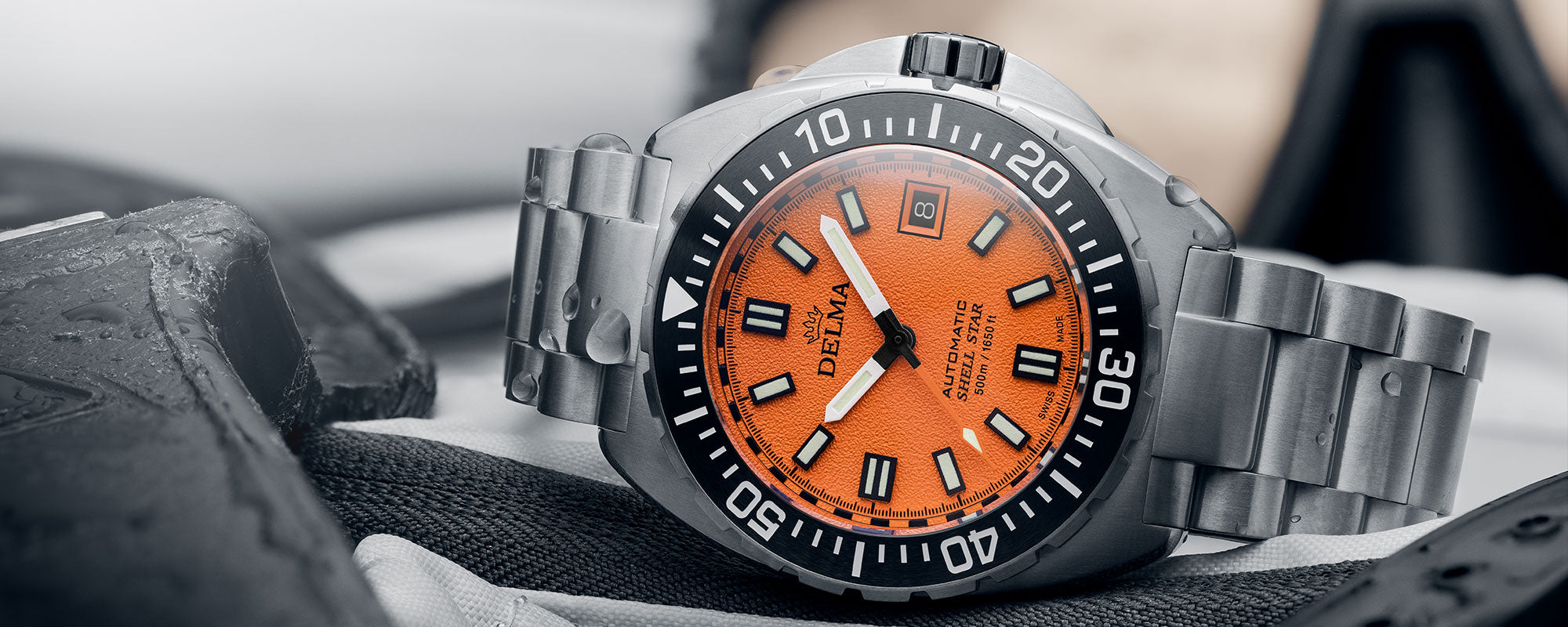 The Shell Star Titanium is sleeker and lighter than ever. Weighing in at only 136 grams, this exciting evolution of DELMA’s signature Shell Star collection is lightweight and robust. With compact proportions for a divers’ watch at 41mm in diameter and just 13.6mm thick, it is exceptionally comfortable and enjoyable to wear in and out of the water.